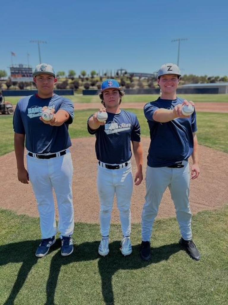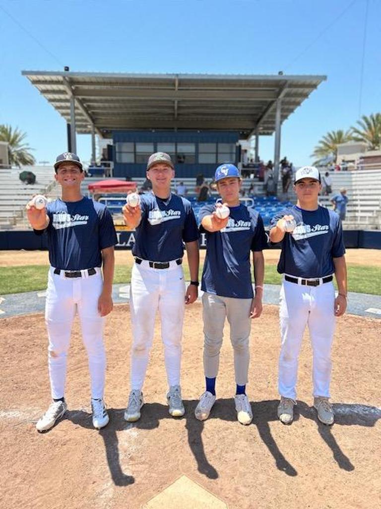 BAWS Star pitchers Blake Benner (2nd from right) & Isaac Okajima (right end)
